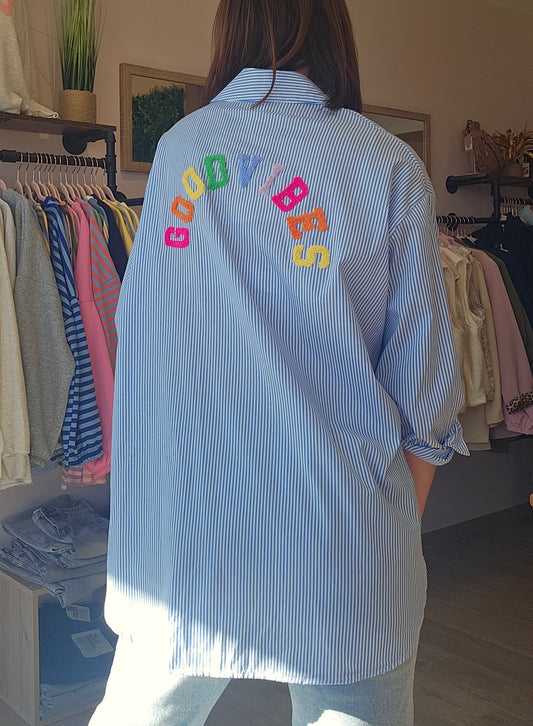 Chemise Bleue "Good Vibes"