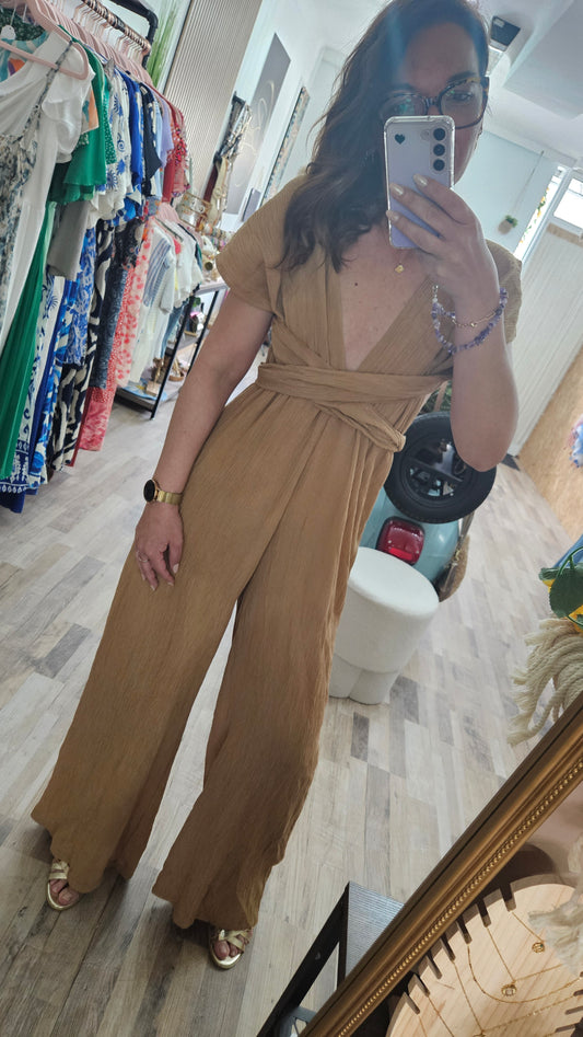 Combi-pantalon beige