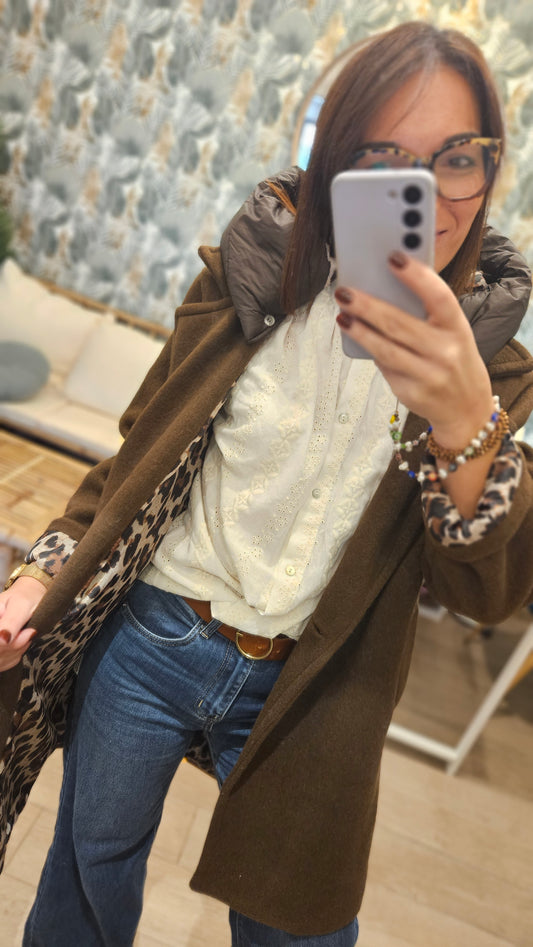 Veste blazer Kaki revers léopard