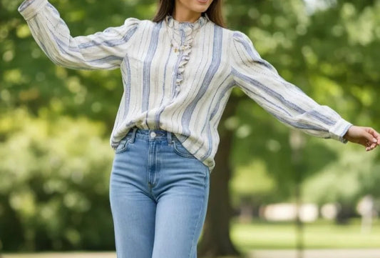 Chemise à rayures Bleues/Ecru