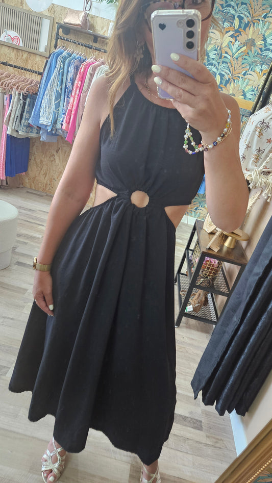 Robe mi-longue ouverte noire