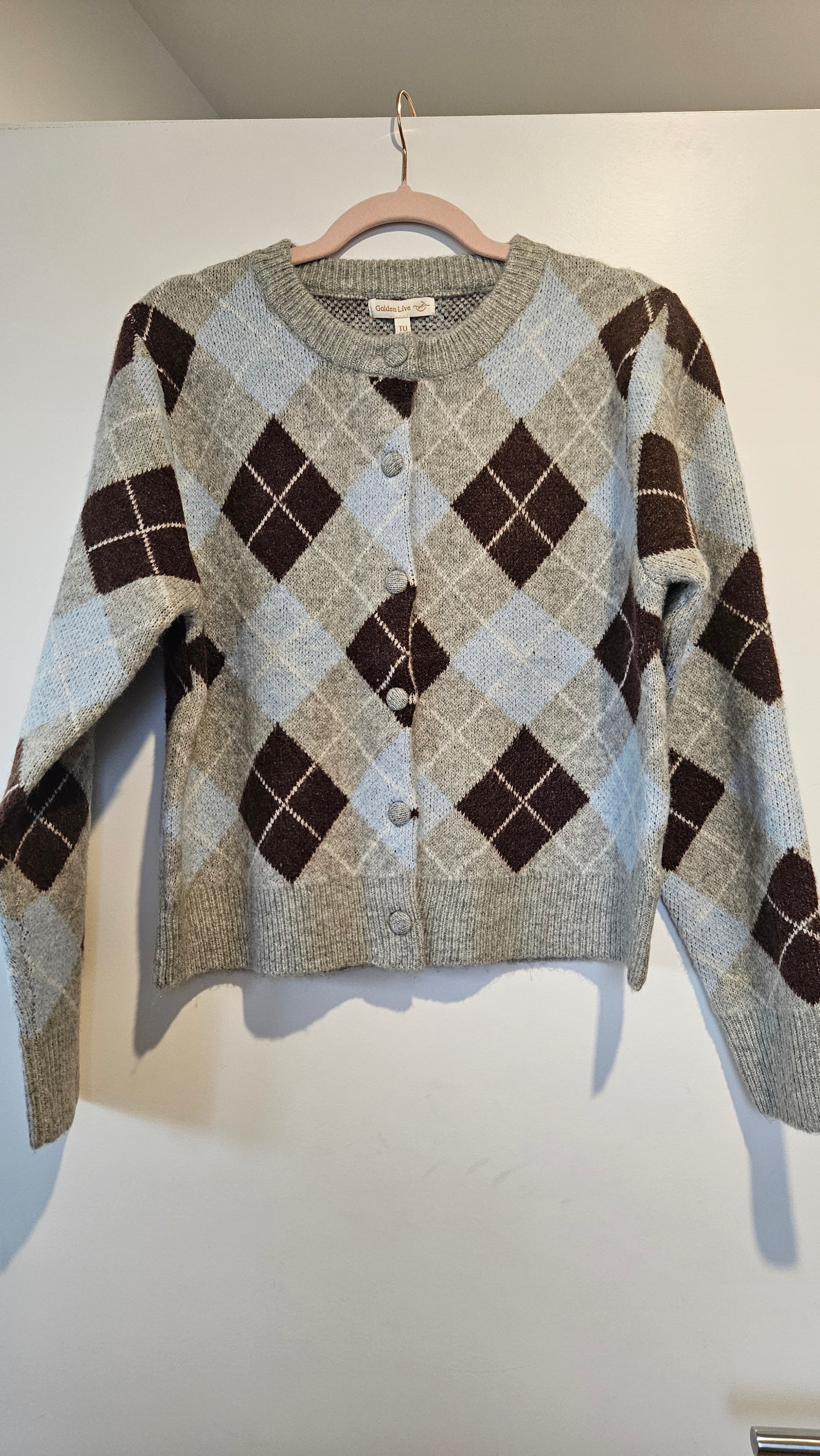 Gilet/Pull à motifs losanges bleu/gris/marron